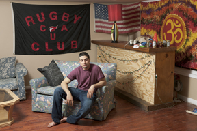 In the art space’s central Gallery II, you will find elegant photo meditations on cloud forms by Sheila Ross. Shot from an airplane window, these cumulus condensations are cropped vertically and tightly installed, recalling Japanese Screen paintings or Art Nouveau compositions. Ethereal, like their subject matter, they reference both substantiation and amorphous expanse. Directly opposite are the documentary photographs of Jeanette May, which present four voyeuristic views of “Bachelor” (the series title) pads and their handsome inhabitants. Deftly straddling the line between the staged and the captured, these men engage us less through what is seen and more through what we, the viewer, begin to infer from what we can read here. Clues like a chocolate leather love seat, an inter-mural rugby banner and a collection of books on finance gently coerce us into the predatory and hilarious tete-a-tete single’s dance of assessing, evaluating and assigning of these innocents into categories that reveal as much about us as they do about the objects that we are surveying. To the rear of the art space is the Fellowship Gallery, holding “But Nothing Happening”, a revelatory assortment of paintings & drawing by 2010-2011 A.I.R Fellowship Artist, Jiyoon Koo. In this room I am reminded of a thought that I had at a recent Joan Mitchell show; “this is the language of painting.” Koo handles her media with an ease and an unforced confidence that, like all skilled artists, makes the challenges of her undertaking seem effortless. In the emerald gem, “Sinking Ship” the artist convincingly suggests, in the most economic of strokes, a canoe sinking into a verdant swamp. Close by, “Bonfire” abstracts a large pyre through intuitive jabs and daubs of oil paint at canvas. This night fire seems inverted though, a ghostly film negative rendered in candied yellows and reds against a blackened turquoise ground. The artist paints portraits as well, exemplified by the emotive and layered, “Puberty” and “Trick Mirror”, impactful smears of color and line peering out at us quizzically from the frame. Lastly, against a snowy paper field, Koo methodically applies cursive cross hatch and scribble in graphite marks that converge and scatter, indicating a landscape seen from above. In this, her first solo show, Jiyoon Koo asserts that she is fluent in the vocabularies of a few different media. The gallery as a whole is rounded out by whimsical and vibrant photo-constructions by Daria Dorosh and enigmatic photographs and exceptional pine sculptures by Ann Pachner. |