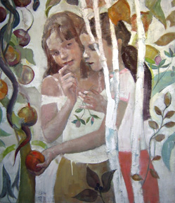 Janet Kurnatowski, 31 Grand, Sideshow 2006-04-01 East side, West side, all around the ‘burg painting is breaking out like spring-blossoms. In the East, Ben La Rocco questions the whole premise of paintings and paint on canvas by cutting holes, hanging them facing the wall, up at ceiling level, even hanging a painting on the back of another painting, at Galeria Janet Kurnatowski. Down West, 31 Grand presents the sensuous paintings of Mike Cockrill. Their sensuality is not just reflected in the adolescent fantasies of the dreamy young girls observed by leering foxes, but in the rich brush work and unexpected color harmonies Cockrill employs. Back on Bedford, Rachel Youens depicts still-lives of bread, with a tonally nuanced palette that brings a sense of the surreal to these table-top views of the staff of life, and Victor Pesce’s elegantly simple pictures of boxes, bowls and bags carry an updated echo of the silent world of Giorgio Morandi at Sideshow |