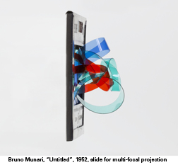 If you are quick you can revisit this iconic medium, now being employed as an art material in “Slide Slide Slide”, a 10 person group show at the expansive new home of Microscope Gallery (1329 Willoughby Ave #2B) in Bushwick. The large repurposed warehouse home of Microscope proves an ideal setting for this show, which posits slide projectors at regular intervals around a darkened interior. The resultant intimate feel of the space belies the extensive scale of this attractive show. The artists here use the projected slide as a primary component of their work. Most notable is the video projection of Bruno Munari’s slide works which include profile images of slides with sculptural objects affixed to them; acrylic ribbons, translucent wire, mesh, etc. paired with the images of their realized projections; beautiful abstract compositions of colored light and layered media. These works date back to the early 1950’s which, considering that Munari was both the founder of the Concrete Art Movement and a member of the Italian Futurists, makes this a rare coup for art viewing in Brooklyn. (Munari’s work most recently appeared in the sweeping Guggenheim survey, “Italian Futurism 1909-1944, Reconstructing The Universe”.) Next to Munari and utilizing a corner of the space is a projected work by Bradley Eros wherein twin abstract images, one flush against the wall, the other projected at a sweeping angle, make for beguiling and ghostly viewing. The atmospheric light in this corner has an ethereal and transfixing quality that lingers. Across the room sits a light table atop which Pantone-like color slides have been arranged edge to edge. Leaking out through the corners of the slides, the light from the table creates a lattice of white-light netting that seems to hold the colored gels and their black frames it its grip. Created by the artist duo Sandra Gibson and Luis Recoder, this work most closely aligns to traditional painting with nods to Constructivist and Minimalist visual tropes. This impressive display of slide based artwork is also notable for the constructs and machinery of its viewing. One work for example is screened via a large antique projector with art deco lines and a shape that could double as a 30’s bronze hood ornament. The gentle whirring of these machines, the steady and repetitious click of the slide carousels, and the flickering pools of light within the space all combine to make this ambient viewing context one of the most unique and unforgettable that I have experienced in some time. Pair that experience with the artworks and this handsome show asserts Microscope’s programing prowess and portends great things to come in their immediate future. (through Oct. 6th) |